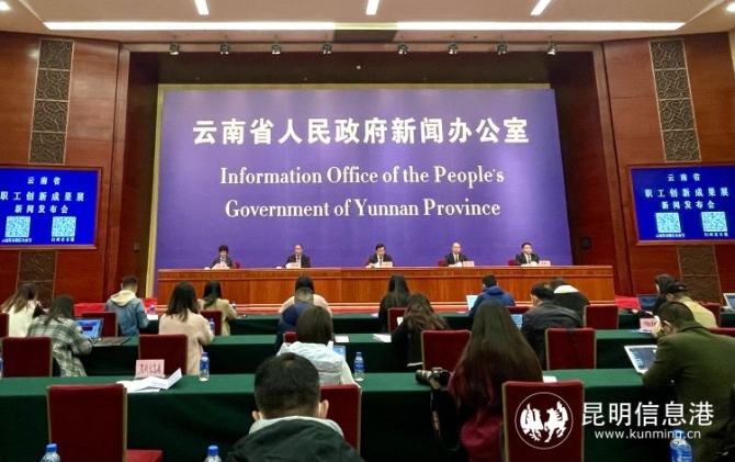昆明信息港讯 记者张玉玲 11月11日上午,云南省职工创新成果展新闻发布会在海埂会堂召开,云南省总工会相关领导及代表介绍了云南省创新成果展的相关情况,并回答记者的提问。