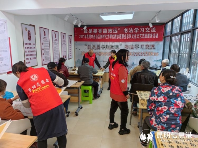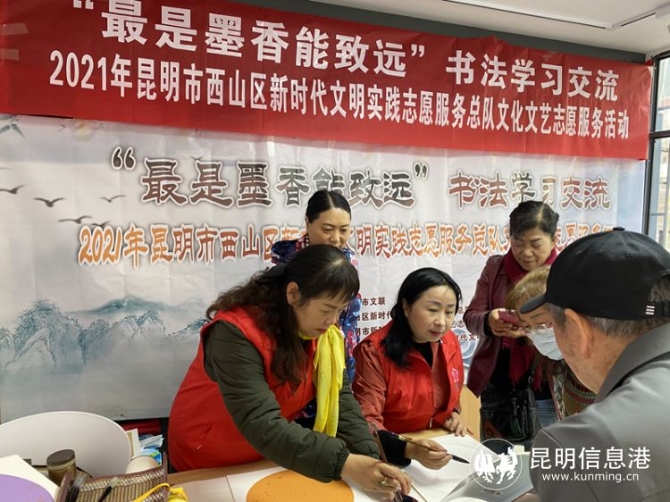 昆明信息港讯 记者甘凌菲 11月11日上午,由昆明市文联、西山区文明办、西山区新时代文明实践志愿服务总队、昆明市新时代文明实践文化文艺志愿服务二大队主办的“最是墨香能致远”主题书法学习交流活动在西山区棕树营街道社工站进行。