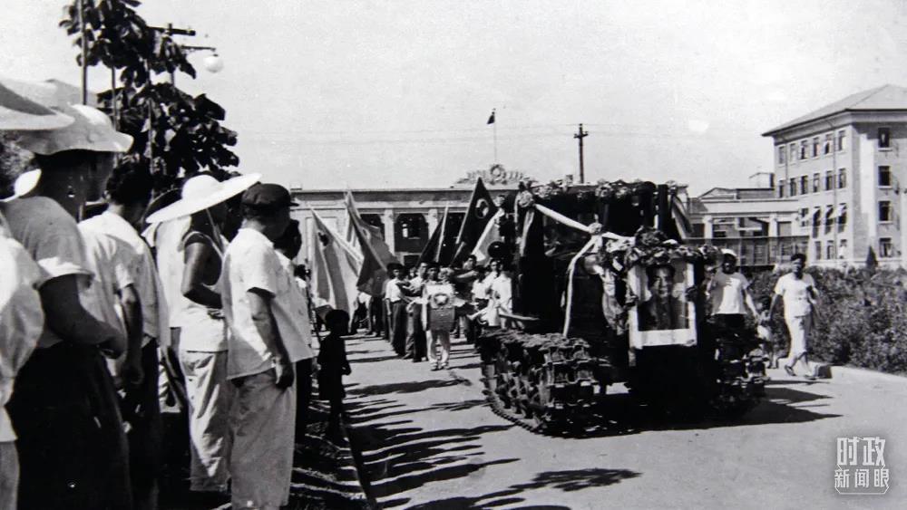 △1958年7月,第一台国产“东方红”牌拖拉机在洛阳拖拉机厂下线。(图/视觉中国)