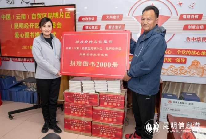 座谈会上,举行了中国(云南)自贸区昆明片区(昆明经开区)帮扶项目资金捐赠、爱心图书捐赠、援建停车场项目移交仪式。
