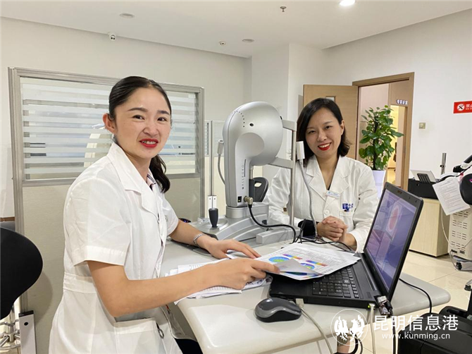 昆明艾维眼科医院高度近视诊疗专家杨亚菲和昆明艾维眼科医院屈光专科检眼师徐林