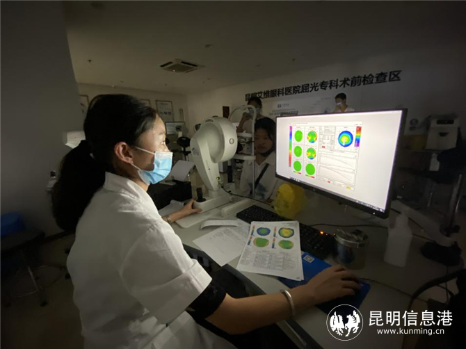 “现在要为您进行的这项检查叫做角膜地形图,主要目的是充分了解您角膜的情况,排除圆锥角膜等异常情况。”昆明艾维眼科医院屈光专科检眼师徐林正在为想要摘镜的近视朋友做术前检查。