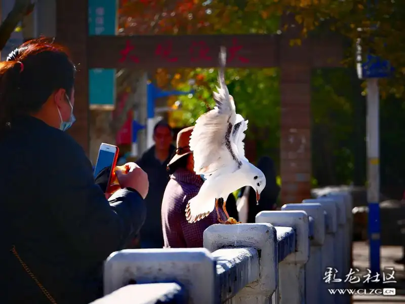 据说海鸥很聪明,它知道什么人对它好,并记得上一年经常喂它的人是谁,一个手势,一声呼唤它都会像家养的一样飞来,甚至会站在喂鸥人的肩膀头上。