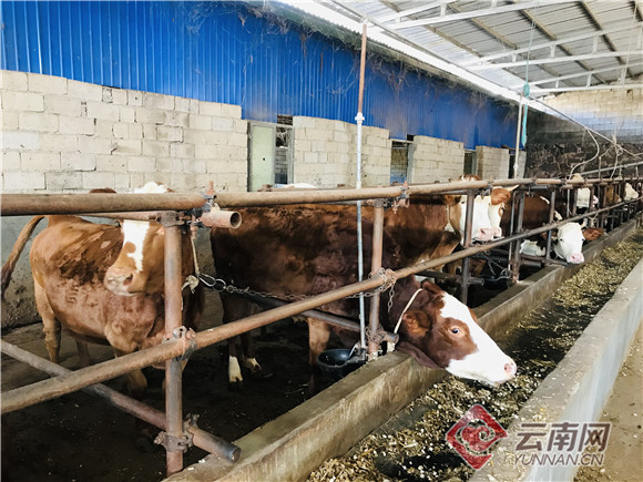 “哞……哞……”初冬时节,走进祥云县东山乡妙姑村,远远便听到一声声牛叫,循着哞哞声走进一组党员熊成翠家,一排牛圈映入眼帘,10多头膘肥体壮的西门塔尔牛正悠闲地吃着料草,哞哞声为静谧的小山村增添了勃勃生机。