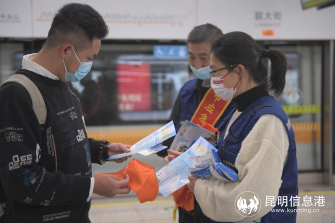 为创新普法宣传举措,营造良好法治环境,进一步普及新《安全生产法》及应急常识,当天,昆明市应急局党员干部于联大街地铁站向过往群众发放宣传单、宣传品等,同时在4号线四列地铁上投放新《安全生产法》宣传海报96幅,在5个地铁站投放防灾减灾应急知识灯箱广告10个……多种形式增强群众自觉学法用法守法的意识,提升应急避险能力。