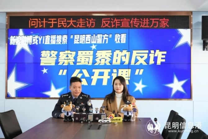 昆明信息港讯 记者合宇聪 11月19日下午,昆明市公安局西山分局举办“问计于民大走访·反诈宣传进万家”网络直播。民警通过网络直播为广大群众带去了一堂别开生面的反诈“公开课”。