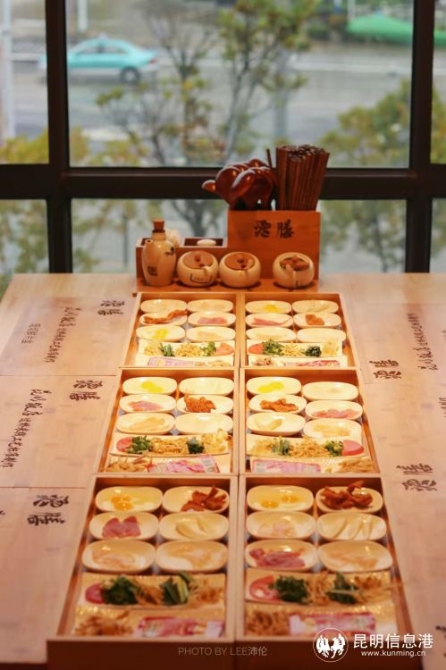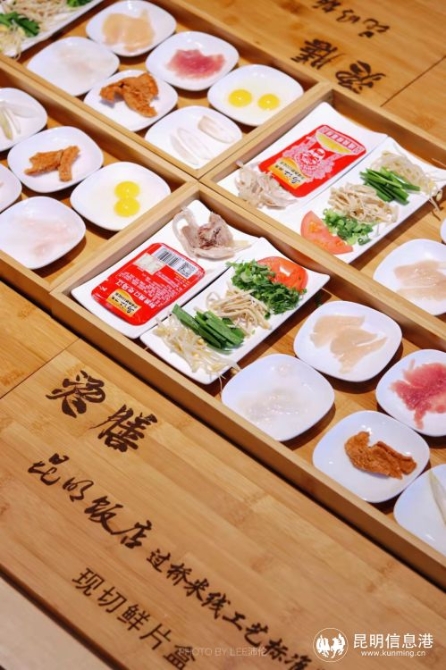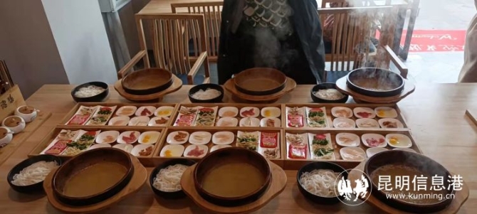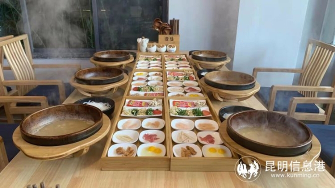 据介绍,目前烫膳过桥米线价位分三个档次,32元价位包含荤菜盘和素菜盘合计十四种食材;58元价位包含前者的十四种基础上增加厚火腿、鸡枞油、鲜虾、鲍鱼片、螺片;98元价位包含前者的十九种菜品基础上增加昆明老卤拼盘、古树滇红、时令水果、老昆明宫廷甜点、老昆明破酥包。开业期间送自酿甜白酒或卤豆腐一份。(昆明信息港讯 记者周智宇)