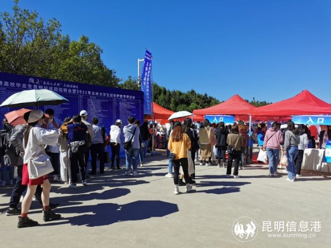 昆明信息港讯 记者上官艳君 为充分发挥人才服务机构在促进大学生就业服务工作中的作用,为高校毕业生提供方便快捷、精准高校的就业服务。11月20日,"云南人才周"系列活动——2021年大中城市联合招聘高校毕业生昆明站巡回招聘会暨云岭大学生就业护航专项行动,在昆明呈贡大学生就业创业市场举行。此次招聘会分为现场招聘会及网络招聘会,共有来自省内外的400余家单位提供岗位20000余个。