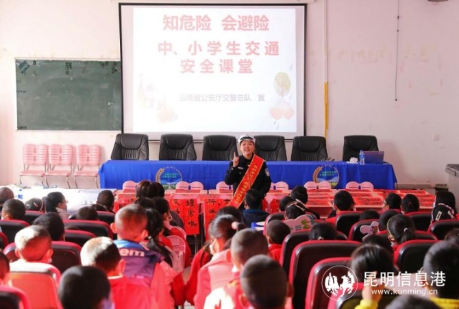 11月18日,在迪庆藏族自治州虎跳峡镇小学,宣传队为该校170余名师生带来一场立体生动的交通安全宣传课。交通安全宣传员将农村地区中小学生安全出行知识传授给孩子们,仔细讲解了闯红灯、不走人行道、在马路上嬉戏引发的后果和危害。