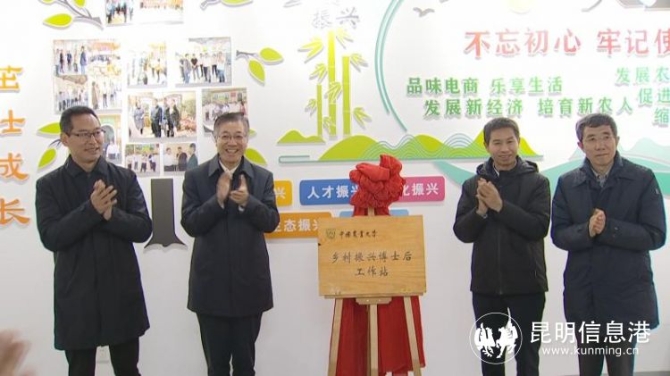 昆明信息港讯 记者杨雁 11月22日,安宁市首个乡村振兴博士后工作站在安宁市县街街道雁塔村揭牌。全国人大常委会委员、中国农业大学校长孙其信,中国农业大学文科讲席教授、国家乡村振兴研究院常务副院长李小云,昆明市委副书记刘申寿,滇中新区党工委委员、安宁市委书记张勤勋共同为工作站揭牌。