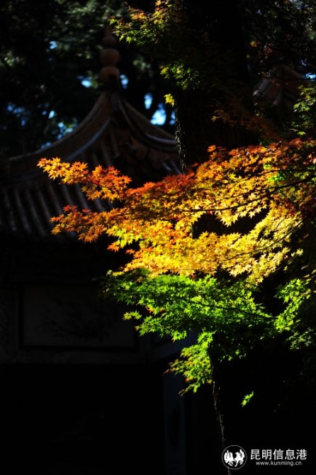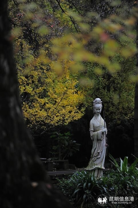 进入小雪节气的昆明,秋色依然迷人。金殿名胜区的古建筑群在秋色衬托下更显色彩斑斓,古树名木都着上了金黄的颜色,如古树中国梧桐、白玉兰、紫薇、银杏等。此外,园内一些主题文化院落培植的红枫、鸡爪槭、无患子、三角枫、乌桕等季相树也是或红或黄。园内除种有数十种乡土色相树种外,还有来自寒带的针叶树种,如金钱松、落羽杉等,在这一季都呈现出最绚丽的景观。(供图:金殿名胜区)