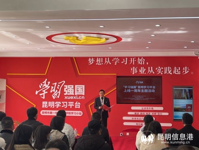 昆明信息港讯 记者龙泉积 11月25日,“学习强国”昆明学习平台上线一周年主题活动在昆明市第一中学西山学校举行。现场,分享了“学习强国”昆明学习平台建设运营的成果和经验,并对“学习强国”昆明学习平台2021年度优秀通讯站和优秀通讯员进行表彰。同时,“学习强国”昆明学习平台昆明市第一中学西山学校学习小站正式揭牌启用。