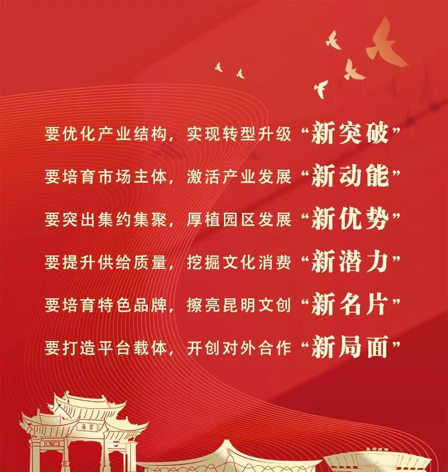 大会强调,要深入学习贯彻党的十九届六中全会精神,全面贯彻落实习近平总书记关于文化产业的重要论述和习近平总书记考察云南重要讲话精神,奋力推动文化创意产业发展迈上新台阶,努力把昆明建设成为西部最具竞争力的民族文化创意之都、中国文创名城和面向南亚东南亚的文化创意产业发展新高地。