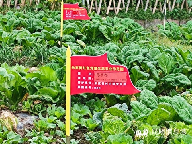朱家箐村民小组党支部书记陈银介绍,2020年,在禄脿街道党工委、办事处的支持下,庄科村党总支以朱家箐村小组党支部为载体,探索“党建+农业园模式”,启动了“朱家箐红色党建生态农业示范园”建设项目,把闲置僵化土地“盘活”,发挥其“造血”功能。同时最大限度解决村内低保户、建档立卡户、老退役军人等特殊对象、弱劳力无法外出务工窘境,实现“家门口”上班模式,每天6—7人对菜园进行专业管护,他们每天在菜园工作7、8个小时,对137块菜地进行管护,每天可领取50元的报酬。村小组把地域优势和生态资源优势转化成为经济优势,把乡村产业、生态、文化优势有机融合,最大化促进村集体增收创收,带动群众致富。