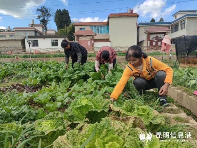 朱家箐村小组全新打造出来的137块菜园子即便是露天种植,冬日里各类蔬菜仍然生长旺盛。几位当地农户正在田间劳作,有的在管护着生长良好的应季蔬菜,有的在播种新的菜籽,还有的在清除田间杂草。已寻到主人的每一小块菜园都插着写有名字牌的小红旗,让人一目了然。首批认筹了菜地的民众,每逢周末都会带上亲朋好友前来采摘成熟的蔬菜,高高兴兴地带回家里美餐。