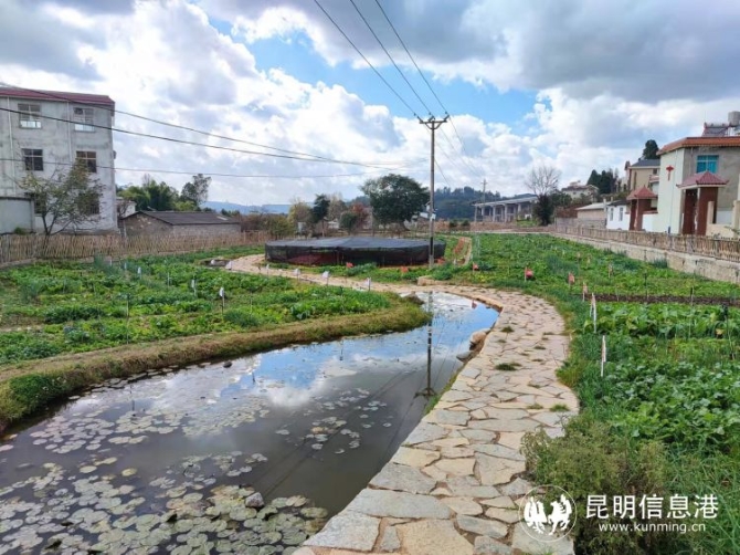 冬日暖阳下,来到朱家箐村小组,只见曾经高低不平且杂乱的僵化土地,如今已蜕变成137块大小均匀的生态菜园,中心位置被一个极为耀眼的“花卉五角星”所装点。曾经纵横错杂的“污水沟”也已化身成一条阶梯式瀑布河沟,里面长满了睡莲、茨菇和各种绿植,还有小鱼、龙虾、泥鳅在其中悠游着。当您带上家人来到这里,撸起裤脚,河沟便是孩子嬉戏的“乐土”,打捞上来的小鱼小虾统统可以免费带回家。