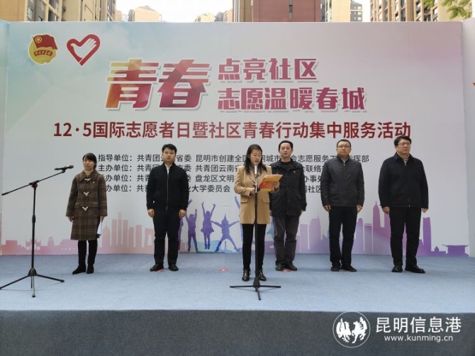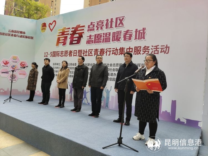 昆明信息港讯 记者张薇 12月3日,在第36个国际志愿者日来临之际,“青春点亮社区 志愿温暖春城”12·5国际志愿者日暨社区青春行动集中服务活动在盘龙区佳园社区开展。活动旨在动员青年志愿者和各界力量投身到社区建设中,助力市域社会治理,为建设人人有责、人人尽责、人人享有的社会治理共同体贡献青春智慧和力量。