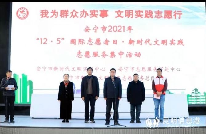昆明信息港讯 记者杨雁 12月4日,安宁市2021年新时代文明实践中心建设工作推进会暨“12·5”国际志愿者日集中活动启动仪式举行。安宁市新时代文明实践中心包括安宁市志愿服务促进中心、安宁市新时代文明实践专项基金、新时代文明实践学校、志愿服务孵化基地、理论宣讲研究室,将成为提升安宁新时代文明实践中心建设水平的有力措施和抓手。