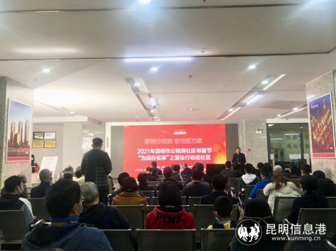 12月4日,第八个国家宪法日到来之际,由昆明市住房保障局主办的2021年昆明市公租房社区邻里节“为民办实事”之普法行动进社区系列活动在公租房泽惠园小区启动,活动通过线上线下联动、多方资源联合,积极创新普法宣传形式,将广大公租房住户关心的政策法规送进小区、送进群众心里。