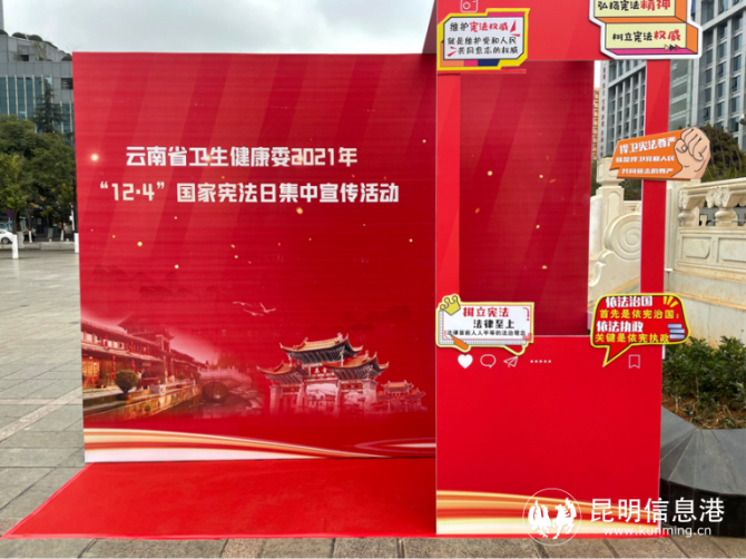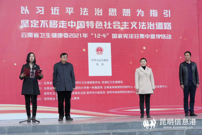 昆明信息港讯 记者李金梓 12月4日,由云南省卫生健康委员会、昆明市卫生健康委员会、官渡区卫生健康局联合主办的2021年“12•4”国家宪法日集中宣传活动在昆明市官渡广场举行。