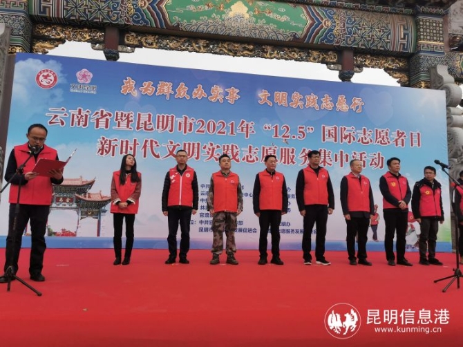 昆明信息港讯 记者尹吉 为推动志愿服务制度化、社会化、常态化,更好融入社会主义精神文明建设,更好发挥志愿服务在服务百姓民生、服务发展大局中的重要作用,12月5日,云南省暨昆明市2021年“12.5”国际志愿者日·新时代文明实践志愿服务集中活动在官渡区官渡古镇启动。