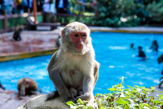 “如果有猴子突然跳到你身上,千万不要怕。”进景区前,导游告知,遇到索取食物的猕猴要淡然处之,它拿到好吃的自然会走。原来,这些猕猴与人相处久后,通常对游客没有恶意,只想和其嬉戏,顺便讨点吃的。