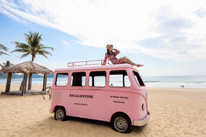 “随便一拍就是一张大片,不需要滤镜,太棒了。”来自映象网记者彭向华拿出手机拍不停。如果你想拍一组清新风格的照片,呆呆岛足够多的旅拍元素。粉红巴士、白色老爷车、七彩沙滩椅、网红泡泡屋、秋千、船舶……各式各样网红拍照道具散落在沙滩上,为洁白的沙滩增添许多趣味。