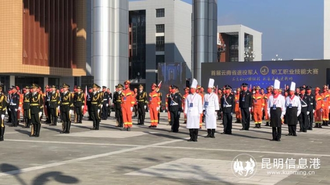 昆明信息港讯 记者曹月 12月8日,首届云南省退役军人职工职业技能大赛在云南技师学院开幕。比赛共设置有消防员、搜救犬训导员、保安员、中式烹调师4个比赛项目,来自全省的15支参赛代表队、120名退役军人职业技术能手参赛。