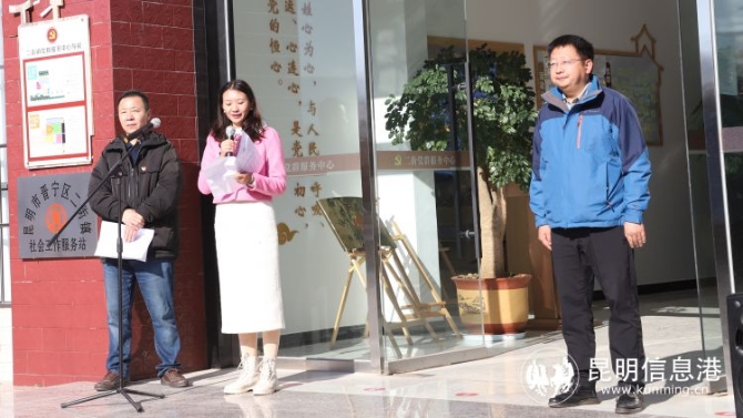 昆明市人社局党组成员、副局长鲁朝凤(中)、昆明市人才市场管理办主任渠渊(左)、晋宁区二街镇党委副书记、镇长宋俊(右)