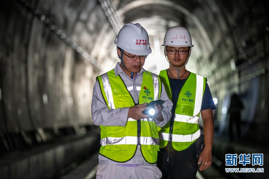 第一个“小故事”,是关于景寨隧道的。“列车通过仅需几分钟,我们为之奋战了5年多。”回忆起景寨隧道的建设过程,中交一航局玉磨铁路项目经理部高级工程师吕红军直言,“太难了!”图为10月26日,吕红军(左)在景寨隧道内查看工程收尾情况。(新华网 赵普凡/摄)