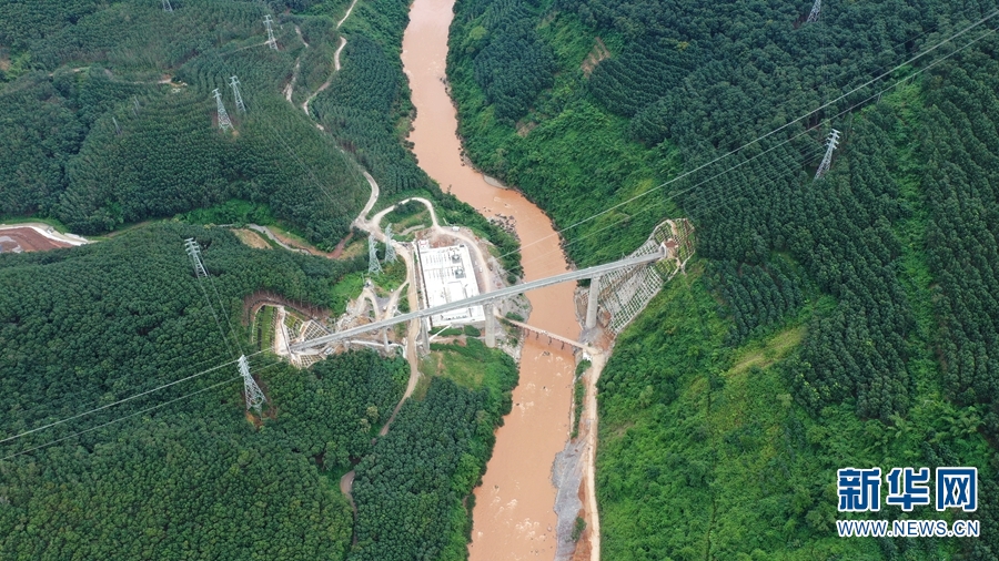 航拍视角下穿山跨河的铁路线,左边的隧道口即为景寨隧道口。景寨隧道位于云南省西双版纳傣族自治州景洪市境内,全长9.5公里,于2021年6月5日贯通,是中老铁路167座隧道中最后一座贯通的。景寨隧道穿越澜沧江断裂带,地质条件复杂,高地温、突泥涌水、软岩变形等难题频出,施工难度极大(摄于10月26日)。(新华网 赵普凡/摄)