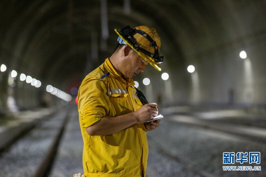 11月初,消息传来,王鹏和工友们不仅按期完成了中老铁路勐腊段30公里的轨道精调任务,线路平均TQI值更“超水平发挥”,达到了2.3。图为王鹏在隧道内记录精调作业相关数据(摄于10月27日)。(新华网 赵普凡/摄)