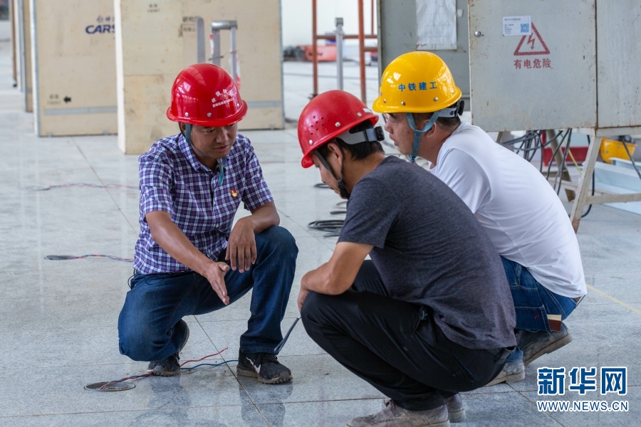第三个“小故事”,是关于车站建设的。“中老铁路是普速线,但我们的站房站台都是按高铁标准、甚至在某些方面是超越高铁标准打造的。”说起中老铁路玉溪至磨憨段的客运车站,中国铁路昆明局集团站房建设指挥部副部长杨学智一脸自信。图为杨学智(左1)在西双版纳站查看候车大厅装修情况(摄于10月28日)。(新华网 赵普凡/摄)