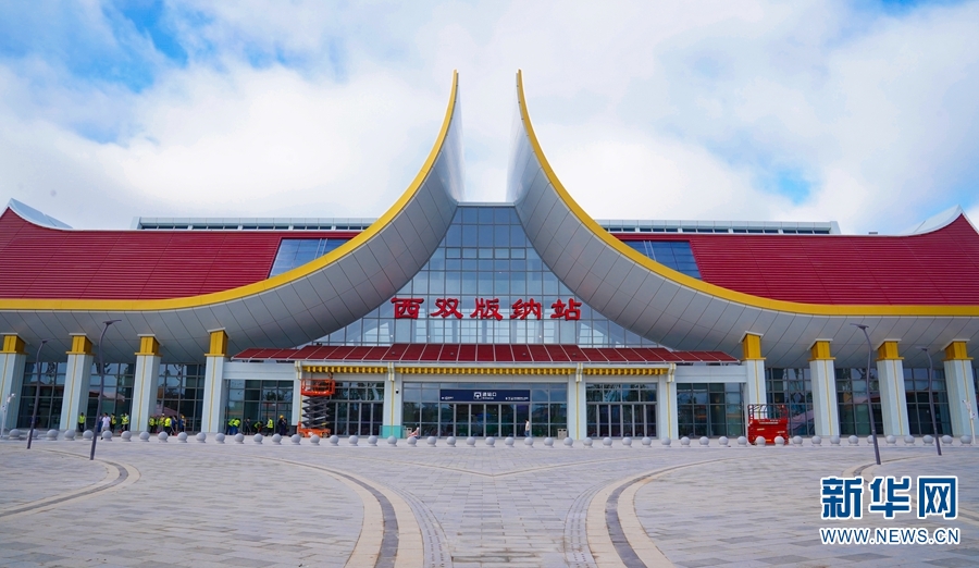 中老铁路玉溪至磨憨段一共设计建设有11个客运站房,杨学智介绍,每一个站房在设计施工过程中,都充分融入了当地的山水风光和民族文化特色。以西双版纳站为例,站房以“雀舞彩云、灵动版纳”为设计理念,屋顶造型提取的是傣族传统民居的元素,站房左右两侧的檐口层叠起翘,又像孔雀翩翩起舞,迎接八方来客。图为西双版纳站(摄于11月22日)。新华网发(杨林/摄)