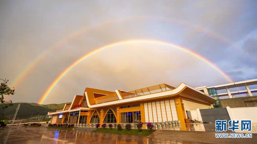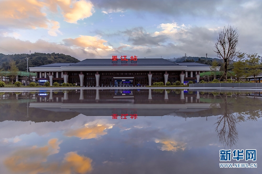 墨江站,以“哈尼风情、紫米之乡”为设计理念,民族风情浓郁、特色鲜明,天文爱好者更可乘火车到此,打卡穿城而过的北回归线(摄于11月16日)。新华网发(陈畅 /摄)