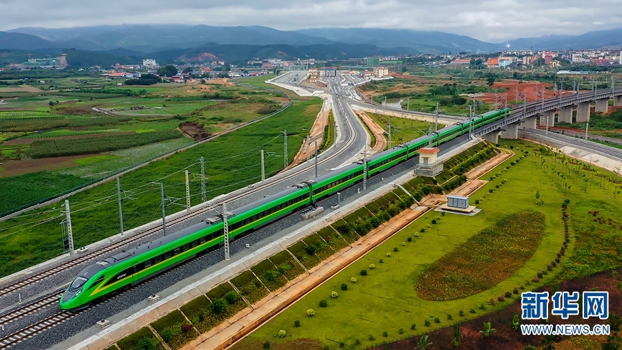 12月3日开通运营后,中老铁路这条长1035公里的钢铁巨龙,必将承载着中老两国人民的梦想,穿山越岭,创造辉煌。图为试跑阶段,“复兴号”穿行在中老铁路上。(摄于11月20日)。新华网发(中国铁路昆明局集团有限公司 供图)