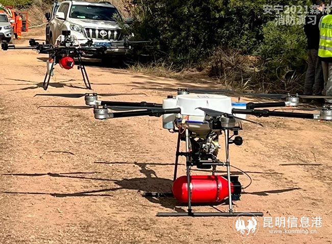 昆明信息港讯 记者孙红亮 通讯员杨昊锦 为进一步提高森林防灭火工作的责任和紧迫感,强化防火意识、坚持预防为主,切实抓好今冬明春森林灭火工作,安宁市森林草原防灭火指挥部组织了森林消防应急队伍为期十天的野外驻训,并于2021年12月9日开展森林灭火专项模拟演练。此次演练特加入了星沅合无人机科技有限公司的无人机投弹灭火科目。