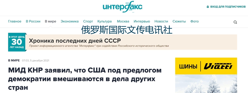 俄罗斯国际文传电讯社题为《中国外交部称美国打着民主的幌子干涉别国事务》的文章说,美国民主乱象丛生。文中大量援引中国外交部发布的《美国民主情况》报告内容:“美式民主沦为‘金钱政治’”“种族歧视根深蒂固”“贫富分化不断加剧”。“在美国,媒体被称为与行政、立法、司法三权并立的‘第四权力’,记者更是被誉为‘无冕之王’。美国媒体虽然标榜独立于政治、为自由和真相服务,但早已服务于金钱和党派政治。”美国挥舞单边制裁“大棒”向其他国家施压,“滥用自身金融霸权和技术优势”。