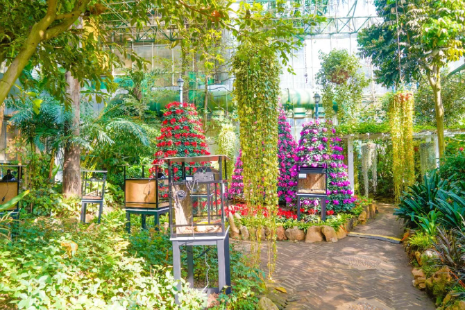 此外,凭借世博园多年在园林园艺方面的丰富经验,自然奇趣秘境的造景也堪称一绝,时而看高山花卉,时而入雨林秘境,通体明亮的玻璃屋顶,让阳光照入林间,使整个“探险过程”更为神秘有趣 。