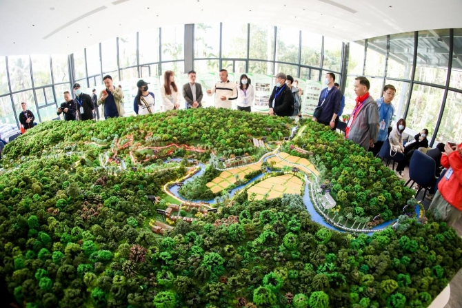 在保亭黎族苗族自治县神玉岛文化旅游区,采访团看到了海南另一番秀美:古朴书院、湖心小岛、玉器艺术馆、南药基地、生态康养美食……风景秀丽、气候宜人,山地湖泊、原始热带生态雨林、森林溪谷等自然奇观,让采访团领略到了保亭一流的康养资源。