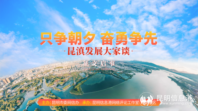 “只争朝夕 奋勇争先——昆滇发展大家谈”征集活动将持续到2022年6月30日,网友可登录彩龙社区APP,添加“昆滇发展大家谈”标签进行投稿。期待更多专家学者、市民网友通过视频、图片、文字等新颖的形式,为城市经济社会发展建言,助力昆明再开高质量发展新局面。