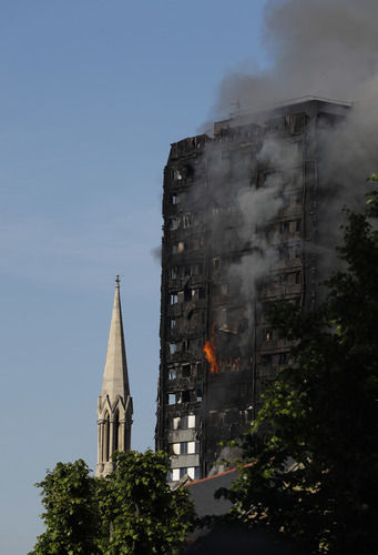 2017年6月14日,位于英国伦敦肯辛顿区的格伦费尔大楼发生火灾。新华社记者韩岩摄