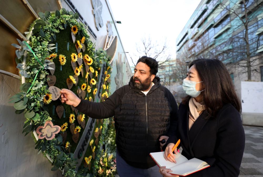 12月10日在英国伦敦拍摄的格伦费尔公寓楼下纪念墙上的寄语。新华社记者李颖摄