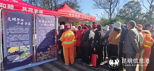 昆明信息港讯 记者杨雨 为弘扬中华民族传统文化,培育和践行社会主义核心价值观,深入推进殡葬改革工作,推动移风易俗、树立文明新风。12月14日,由昆明市经济技术开发区社会事务局主办,洛羊街道承办,尚邻修悦社会工作服务中心协办的温暖经开树新风系列宣传活动之“冬至感恩思亲敬老”活动来到马料河公园广场,与附近的居民、环卫工人代表开展了一次别开生面的绿色祭祀主题宣传活动。