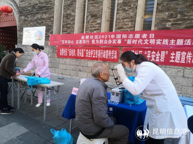 昆明信息港讯 记者曹月 为把党史学习教育落到实处,切实为群众解难题、办实事,同时提高辖区居民的眼健康水平,积极做好眼健康知识普及,12月10日,金碧街道金碧社区联合昆明艾维眼科医院等单位开展了“百年初心 志愿同行 我为群众办实事”新时代文明实践主题活动,为辖区居民送上了眼健康公益检查。