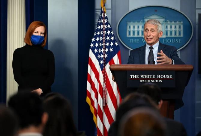 当地时间2021年12月1日,美国国家过敏症和传染病研究所所长福奇在白宫表示,美国出现首例新型变异病毒奥密克戎毒株感染病例。(图片来源:视觉中国)