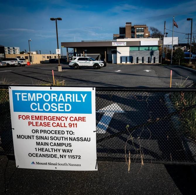 当地时间2021年11月25日,美国纽约州长滩一医院急诊室关闭。(图片来源:视觉中国)
