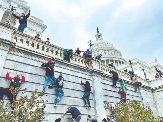 美式民主是美国愈演愈烈的党派纷争、国家撕裂的政治诱因和“催化剂”,纷争从推举候选人开始揭幕。图为今年1月,数千名美国民众聚集在华盛顿国会山并强行闯入国会大厦。(图片来源:视觉中国)