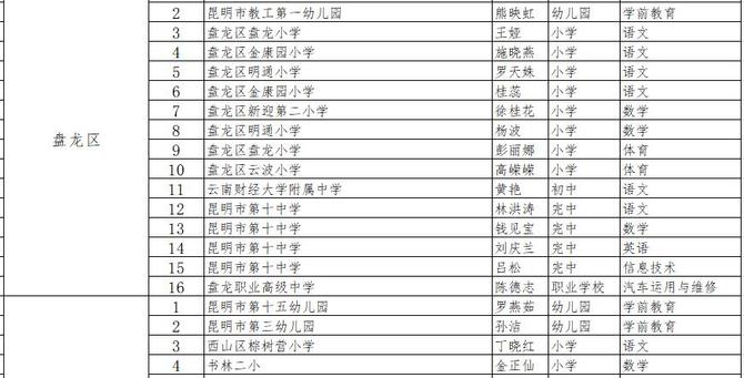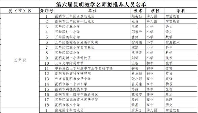 昆明信息港讯 记者上官艳君 12月15日,记者从昆明市教育体育局获悉,昆明市拟命名95名教师为第六届昆明教学名师,702名教师为昆明市2021年中小学教坛新秀。
