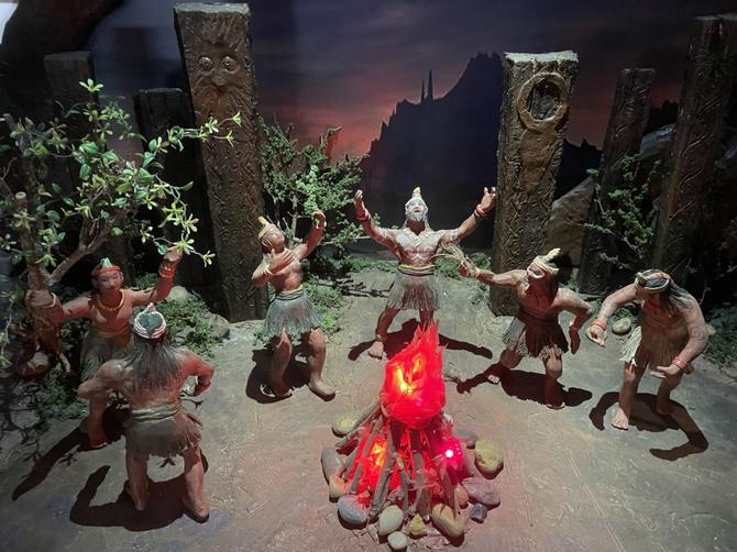 “本御出朝,山奔地摇。逢山开道,遇水搭桥。遇龙搬角,遇虎拔毛!”采访团来到馆内非物质文化遗产展厅时,厅内舞台上的一声吆喝引起大家的注意。